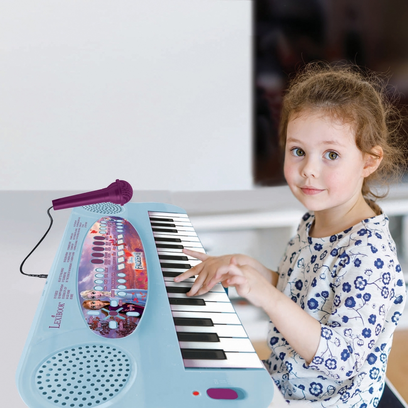 - clavier electronique au design Disney Reine des Neiges + 1 micro inclus / 22 morceaux de demonstration + 8 rythmes, 8 tonalites et 4 percussions / Controle du volume.